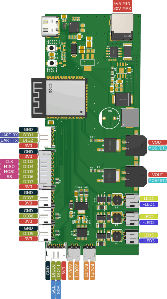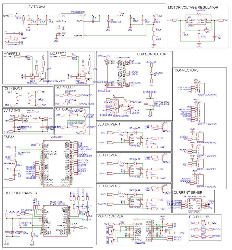 I designed and built the custom PCB for this project. The board includes three constant-current LED drivers, two MOSFETs, two channel Motor driver IC and peripheral connectors for attaching sensors such as humidity and motion detectors. Each PCB functioned as the control hub for a room, communicating wirelessly with a Raspberry Pi 5 running Home Assistant. This design enabled modular automation, real-time monitoring, and reliable wireless control in a compact setup.