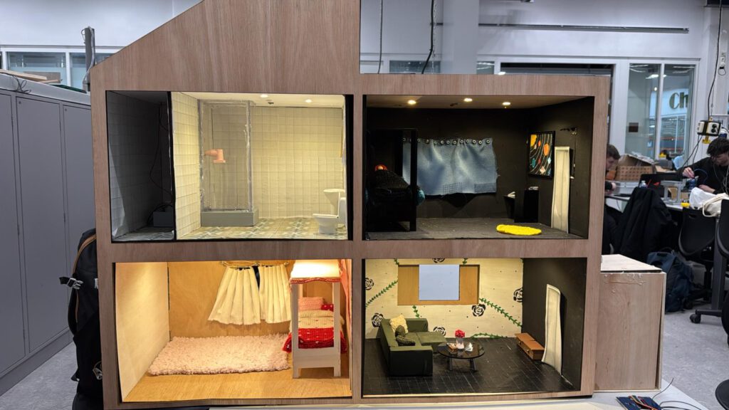 The Home Automation Demonstration Model was developed as part of an Expo project at Fontys University of Applied Sciences. It is a scaled smart home equipped with lighting, heating, water management, motion detection, and environmental sensing.